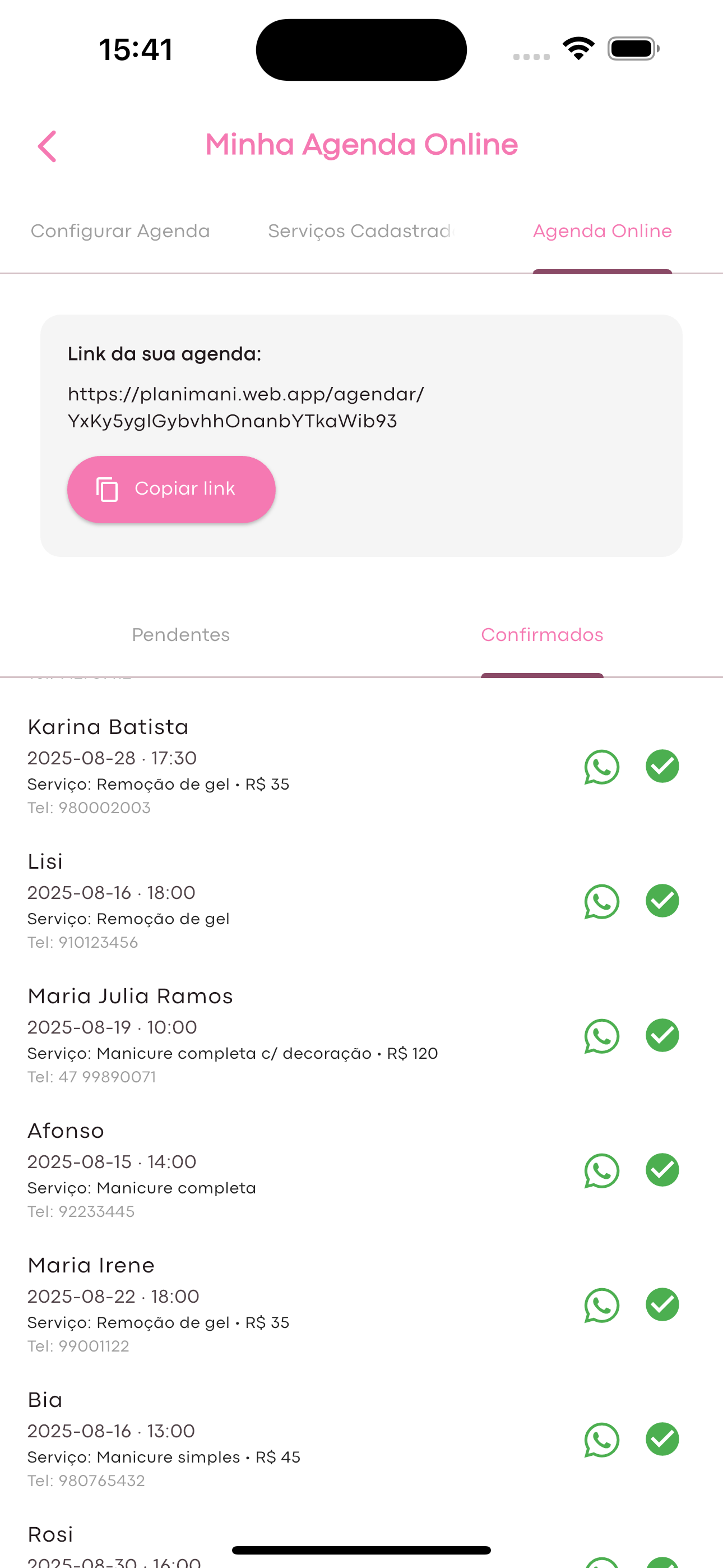 Link para clientes marcarem sozinhas. Adeus mensagens indo e voltando.